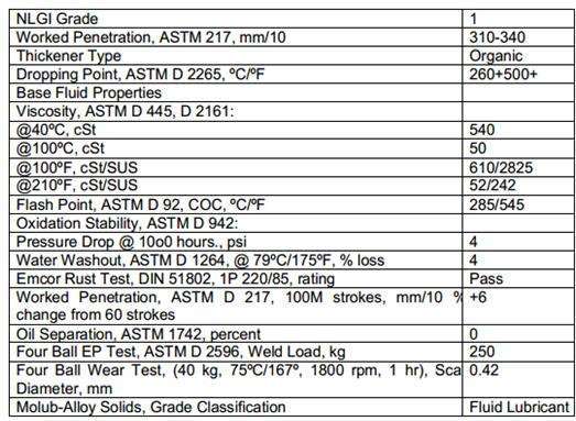 由于高粘度合成基礎(chǔ)液的使用Castrol Molub-alloy 1000