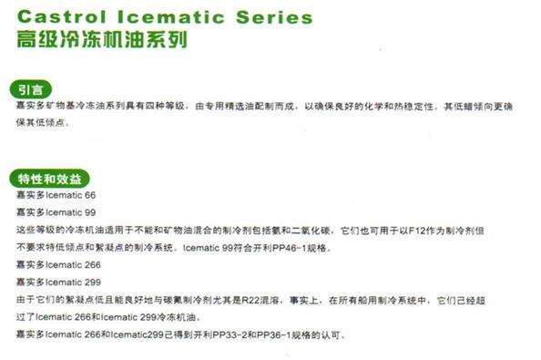 嘉實多ICEMATIC 66、99 、266、299 高級冷凍機油詳細說明 (瀏覽4899次)