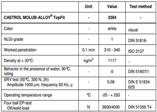 Molub-Alloy TopFit 32有一種人工合成的漿糊狀的基地和白色固體潤滑劑。