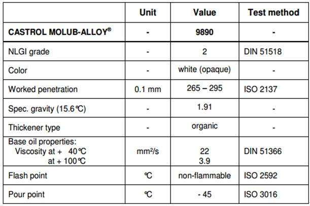 嘉實多Molub-Alloy 9890 是一個特殊用途的潤滑脂從一個先進的合成流體和配制