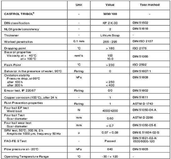 軸承。由于100 mm2/s嘉實多賽寶?3030 / 100也可用于快速移動的基礎油粘度