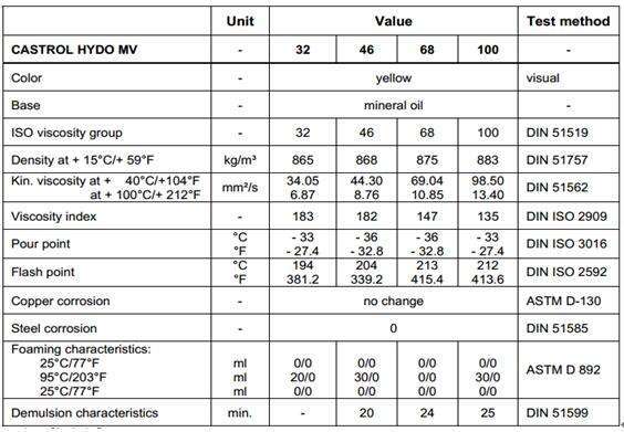 HYDO MV超過標準DIN 51 524第2部分的要求,HLP液壓