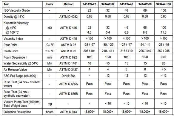 Tribol 943 AW抗磨油也能抑制泡沫并提供防腐蝕保護一個不尋常的程度見典型特征。