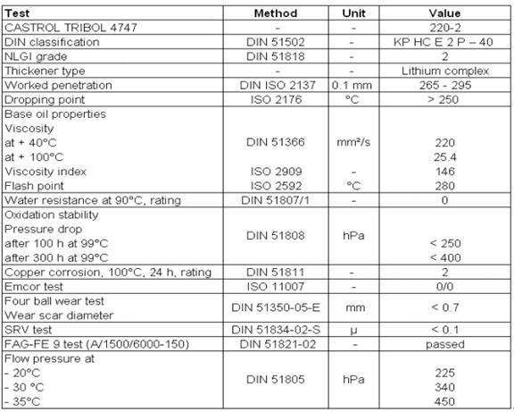 嘉實多TRIBOL 4747潤滑脂時,應使用載荷中度到重度和速度是緩慢的適中。
