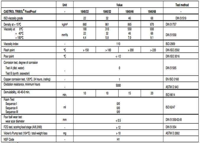抗磨和抗氧化性能是必需的。嘉實多TRIBOL FoodProof 10至1822年還特別