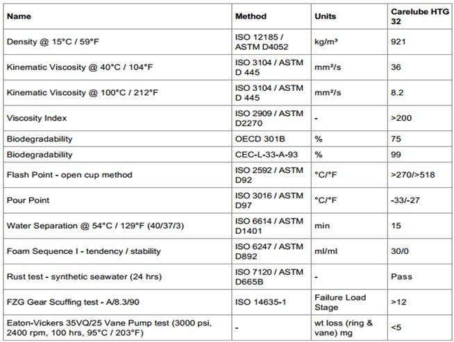 CARELUBE HTG32是一種可生物降解的液壓油,制定使用自然