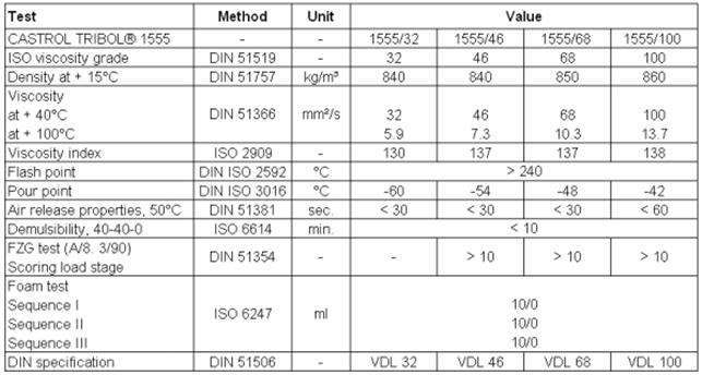 ?嘉實多TRIBOL 1555油超過由DIN 51506,VDL-HC油必須滿足的要求。 |