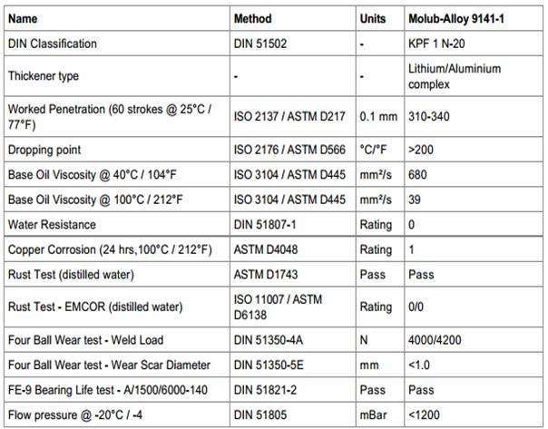 也可以使用在不同溫度下的條件和應用CASTROL MOLUB 9141-1。