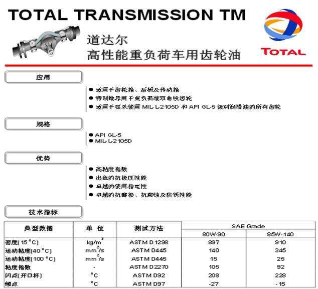 道達爾TOTAL TRANSMISSION TM 85W-140、TM 80W-90詳細說明 (瀏覽2389次)