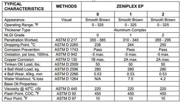 再潤滑。 Zeniplex潤滑脂兼容大多數工業潤滑脂。 有些軟化時可能發生的