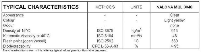VALONA MQL 3046是一個完整的無氯的切削油,應用微