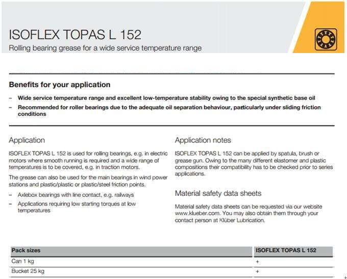 ISOFLEX TOPAS L 152用于滾動軸承,如電電機在運行中需要的是光滑的和廣泛的