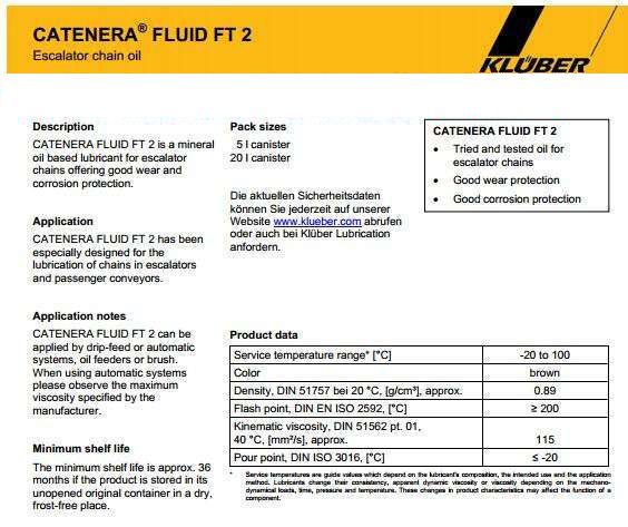 CATENERA FLUID FT 2是一個的礦產自動扶梯鏈條油具有良好的耐磨性和防腐蝕保護。