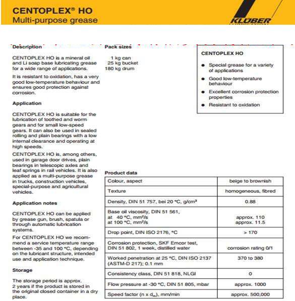 CENTOPLEX HO多用途潤滑脂,各種特定的應(yīng)用程序的鋰皂潤滑脂。 它是抗氧化,具有很好的低溫性能和良好的防腐蝕保護(hù)。
