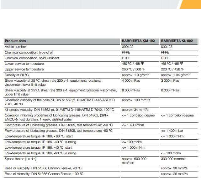 BARRIERTA KL 092是全氟聚醚(PFPE)的高溫潤滑劑的質量標簽。 有關BARRIERTA是長期穩定性和溫度穩定性的代名詞,BARRIERTA油脂潤滑劑世界各地的專家在許多領域的首選。 BARRIERTA K油脂結合了低扭矩在低溫下一個令人信服的長期穩定性,在高溫下和媒體曝光。 這確保克魯勃特定等級的原材料和一個專門開發的增稠劑概念。