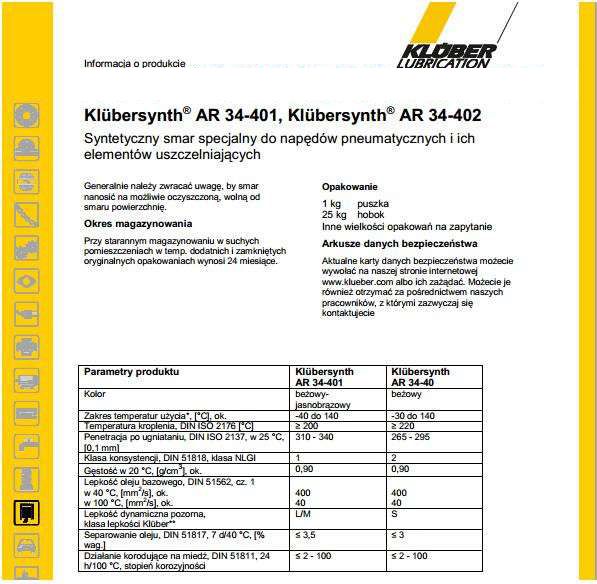 KLübersynth AR 34-401和402合成廣泛的潤滑脂的基礎上一個特殊的鈣皂稠化劑。它們是從含有重金屬和固體潤滑劑的原材料中釋放的。這些含有特殊添加劑潤滑脂提供最大的性能和運行的可靠性和使用壽命。由密封元件和相對摩擦機構組成的氣動元件,如活塞桿或氣缸筒,因此可以使用在相對較寬的服務溫度范圍內。這是KLüKluber潤滑之間的密切合作的結果,氣動元件及接頭和大學研究中心生產。