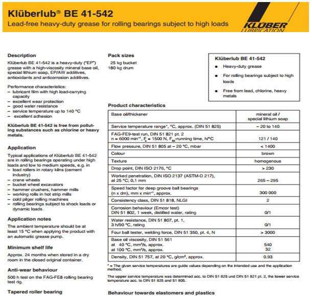 典型的Klberlub BE 41-542應用程序是在高負荷的滾動