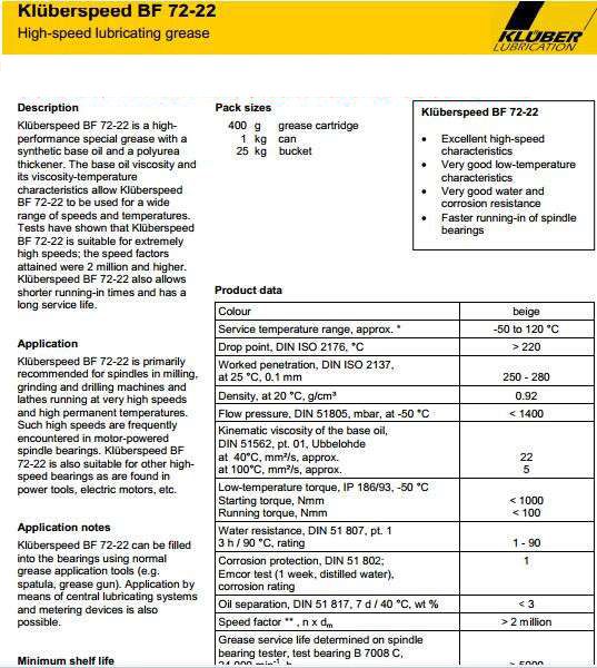 Kluberspeed BF 72-23是一種高性能特種潤滑脂,合成基礎油和尿素復合增稠劑的基礎上。 所選擇的基油的粘度和基油的粘度 - 溫度行為提供了一個很寬的工作溫度范圍和速度。