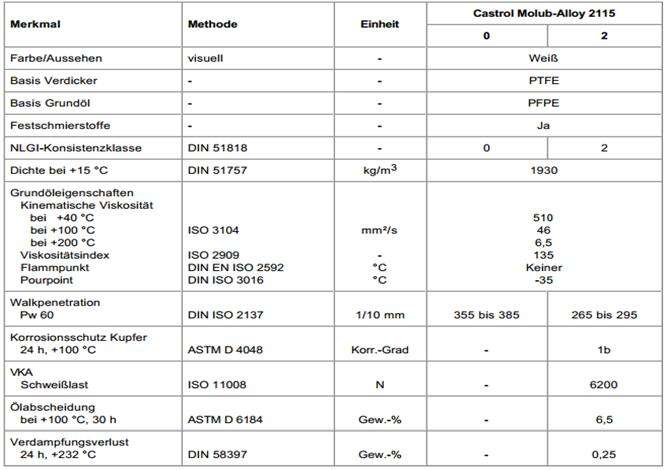 在高溫區(qū) 。 嘉實(shí)多Molub-Alloy 2115可能是連續(xù)運(yùn)行達(dá)250°C,并使用280℃短期。 特別推薦脂,