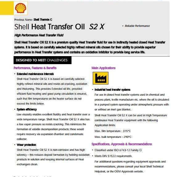 殼牌傳熱油S2 X是一種優質,在間接使用熱傳導液體