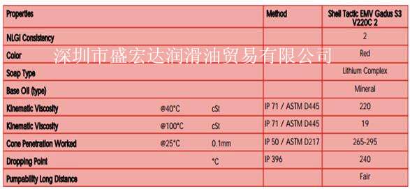 Shell Tactic EMV Gadus S3 V220C 2潤滑脂是由高粘度指數礦物基礎油和鋰皂基稠化劑調合而成,并含有無鉛型極壓添加劑和抗磨、防腐蝕添加劑。Shell Tactic EMV Gadus S3 V220C 2潤滑脂是高級無鉛多用途工業極壓潤滑脂,可廣泛應用手工業滾動和滑動軸承,如冶金、造紙、采礦和建筑行業。