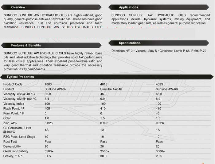 Sunlube AW100 Sunlube AW Hydraulic Oils