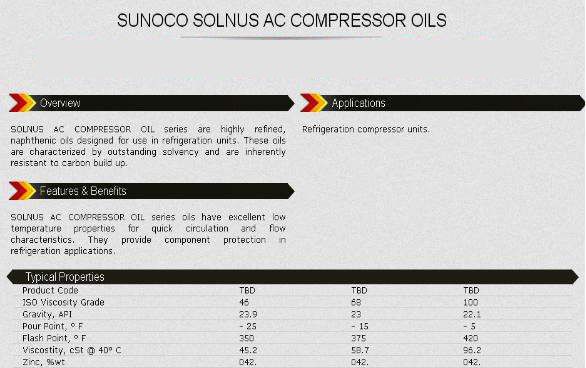 SOLNUS AC 壓縮機(jī)油系列潤滑油具有良好的低溫性能的快速循環(huán)和流動(dòng)特性。他們提供在制冷應(yīng)用中的組件保護(hù)。制冷壓縮機(jī)組。