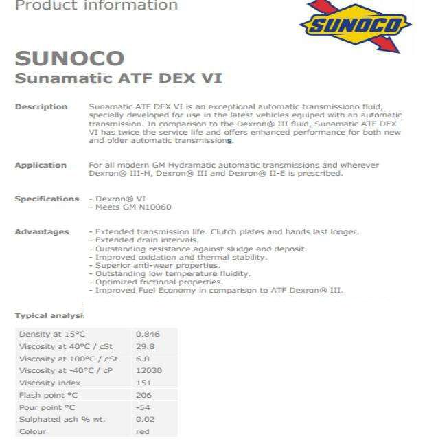 SUNAMATIC ATF DEXRON VI詳細說明 (瀏覽2480次)