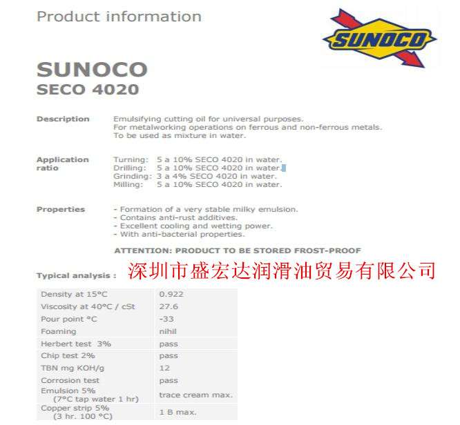 SUNOCO SECO 4020詳細(xì)說明 (瀏覽2689次)