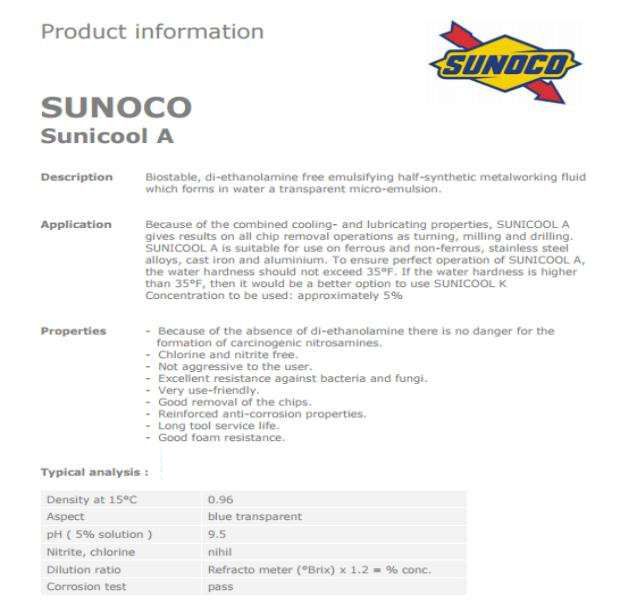 應用由于聯(lián)合冷卻和潤滑性能,SUNICOOL A給出了所有的芯片去除操作車削,銑削和鉆孔的結(jié)果。
