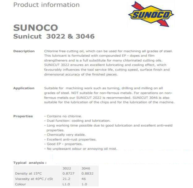 SUNOCO SUNICUT 3022、3046詳細說明 (瀏覽2814次)
