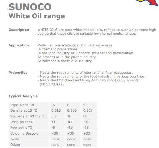 SUNOCO WHITE OIL LV、F、SP詳細說明 (瀏覽2536次)