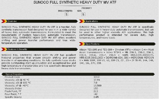 SUNOCO FULL SYNTHETIC HEAVY DUTY MV ATF是專門設計用于重型自動變速器,但也可用于其它高粘度ATF的應用。這種高性能的產品是用于嚴重的責任,高溫,和沉重的負荷。