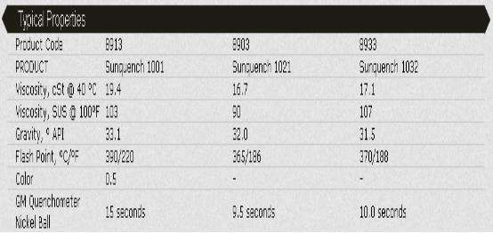 SUNOCO SUNQUENCH OILS 1001推薦用于常規淬火的臨界冷卻速率和低浴溫度高達190°F.