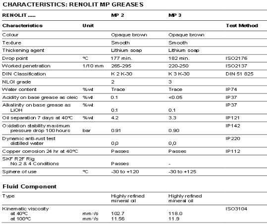 RENOLIT MP的潤滑脂含有的抗氧化劑,抗,激活金屬腐蝕和抗磨損添加劑。