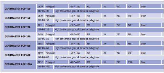 GEARMASTER PGP全合成齒輪油,聚乙二醇合成齒輪油。 其特點包括極低的摩擦系數,耐壓力高,非常高的剪切穩定性和防腐蝕極好的保護。