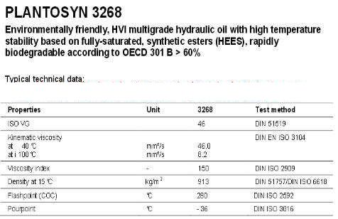 PLANTOSYN 3268是一個技術上先進,環保設計的液壓油