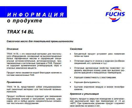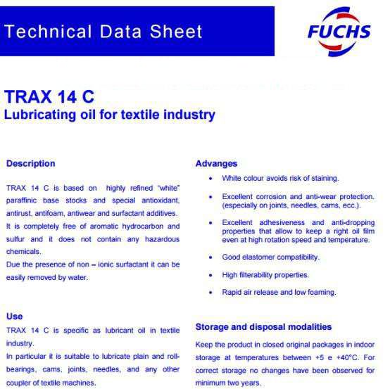 TRAX 16 C是在紡織品的潤滑劑油的具體