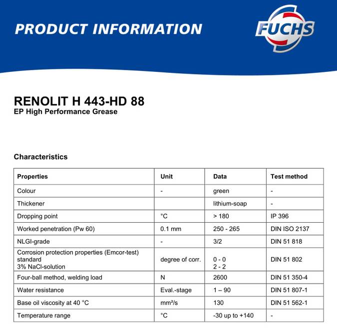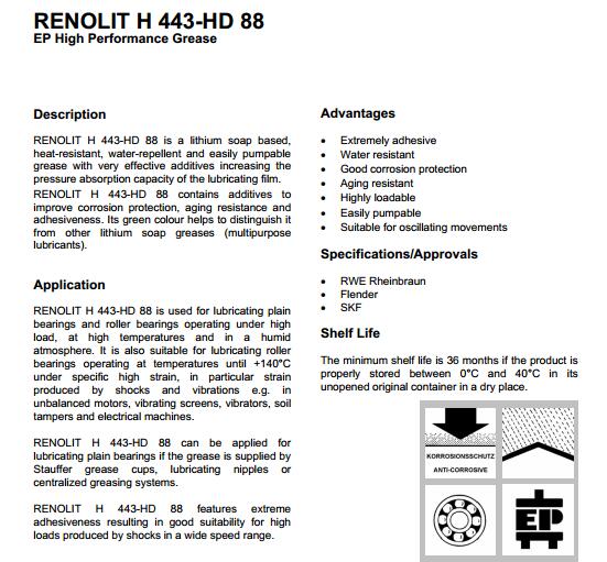 RENOLIT H 443-HD 88包含對(duì)添加劑提高防腐蝕,耐老化,