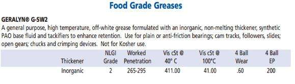 一個通用的,溫度高食品級潤滑脂,灰白色油脂制定與無機,非熔增稠劑,合成