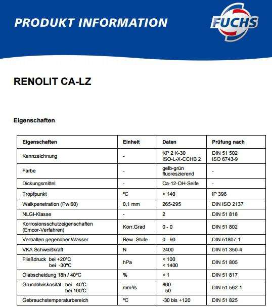 RENOLIT CA-LZ是一個長期俗氣油脂對高粘度的基礎油和一種特殊鈣皂。