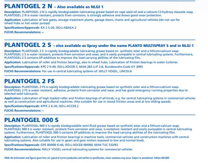 PLANTOGEL 000S潤滑脂是由鋰/鈣皂,基油是