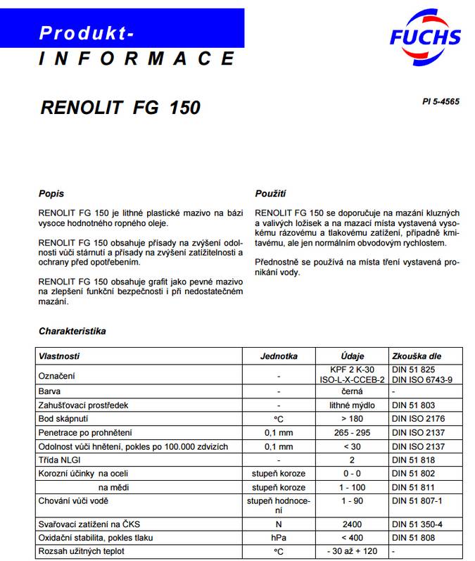 RENOLIT FG 150含有石墨作為固體潤滑劑