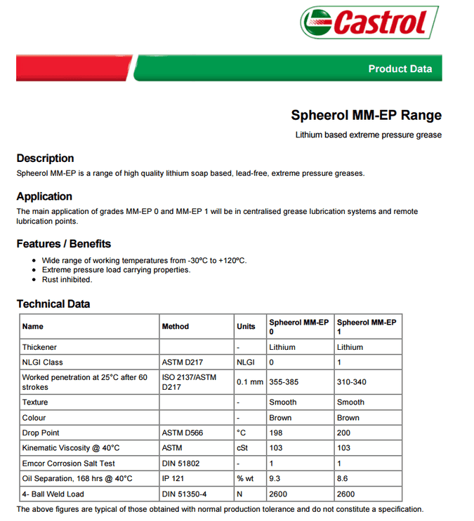 Spheerol MM-EP系列高質量鋰皂基,無鉛,極壓潤滑脂。