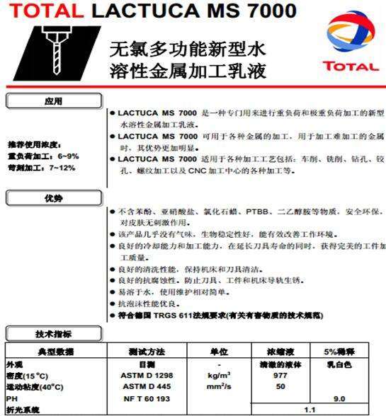 LACTUCA MS 7000是一種專門用來進行重負荷和極重負荷加工的新型水溶性金屬加工乳液