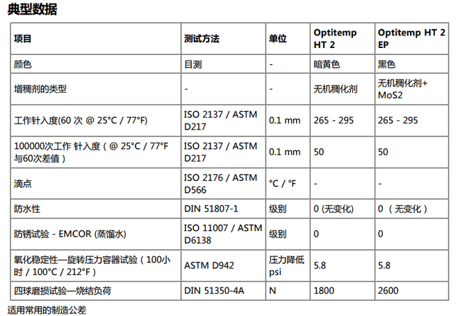 OPTITEMP HT 2 EP特別適用于承受上升負荷的摩擦點,