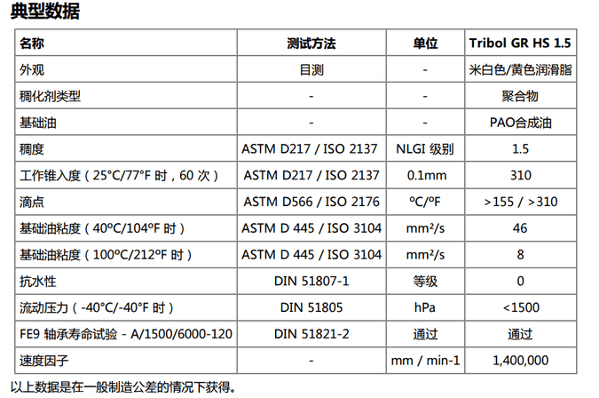 嘉實多 Tribol? GR HS 1.5(原名嘉實多 Longtime? HS 1.5)是一款合成高性能潤滑脂,基于創新的稠化劑技術。它具有 卓越的機械和剪切穩定性以及出色的抗水、抗潮濕和抗金屬加工液的特性。