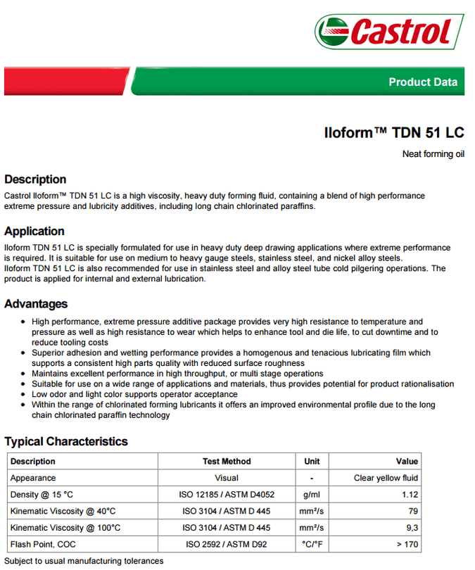 iloform TDN 51 LC也推薦使用不銹鋼和合金鋼管冷軋作業(yè)。這個