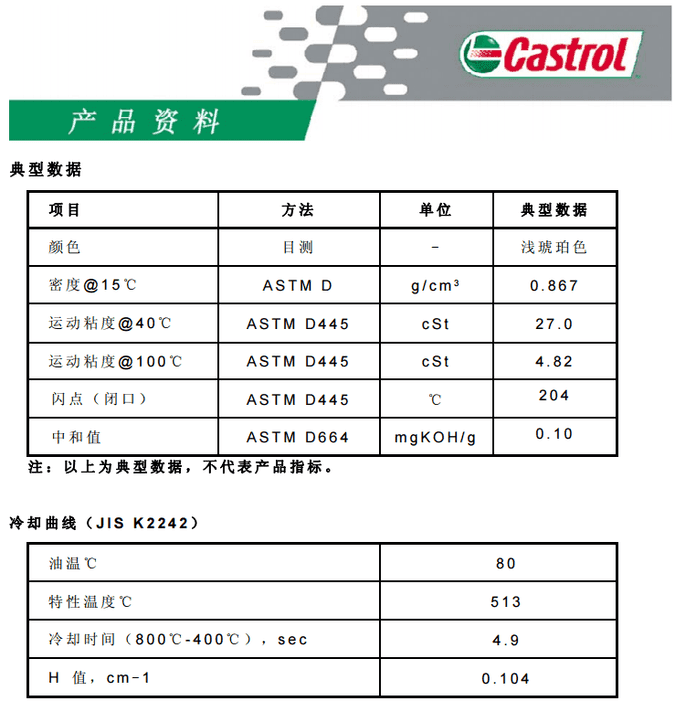 本產品具有揮發度小,油劣化損失小,工 作帶走量小,在常規淬火油浴槽中工作壽命長的特點。