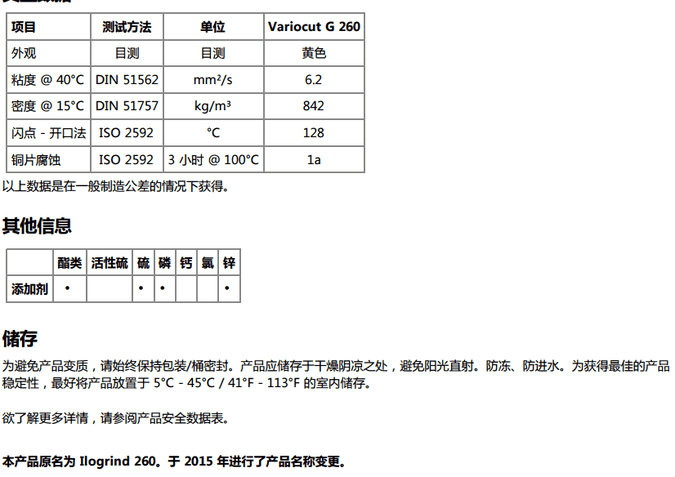 嘉實(shí)多 Variocut G 260(原名 Ilogrind 260)是一款不含氯、不含重金屬的低粘度油性切削液。